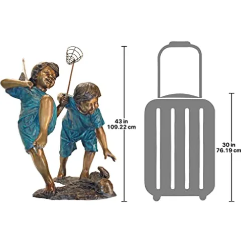 Add a touch of whimsy to your outdoor space with the Design Toscano Double Trouble, Fishing Boys Cast Bronze Garden Statue. Crafted using the traditional lost wax bronze method, this stunning piece showcases exquisite craftsmanship and attention to detail, ensuring each statue is unique. The beautiful two-tone bronze with verdigris finish enhances its charm, making it a standout addition to any garden or home decor. Hand-finished by skilled artisans, this exclusive statue captures the playful spirit of childhood, inviting joy and nostalgia into your outdoor retreat. Perfect for collectors and nature lovers alike, it’s a timeless piece that will elevate your garden aesthetics for years to come.