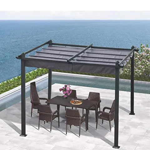 The 10×10 Ft Patio Pergola by DESIGNSCAPE3D combines style and functionality, making it the perfect addition to your outdoor space. Its retractable canopy allows you to easily adjust for optimal sun protection, while the premium polyester fabric offers durability against sun and light rain. Built with a sturdy rust-resistant powder-coated aluminum frame, this pergola ensures stability and longevity, featuring a robust 2.54-inch foot tube and 7.09-inch foot chassis for enhanced support. Versatile in use, it serves as a spacious shelter for BBQs, parties, and family gatherings, effortlessly transforming your backyard into an inviting oasis. Plus, with clear labeling and straightforward instructions, assembly is a breeze, taking less than 60 minutes to complete. Enjoy the great outdoors with comfort and style.