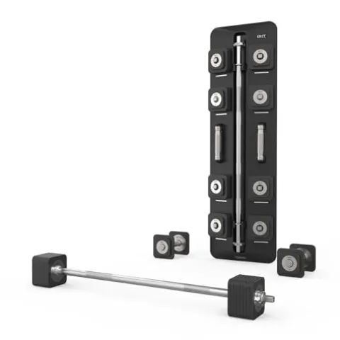 - SPACE-SAVING WALL-MOUNTED DESIGN: Sedate, classic black dumbbell barbell set with an ultra-small footprint that takes up only a small wall. The wall-mounted design allows you to conveniently store your equipment, freeing up valuable floor space for a neat and efficient home gym setup.