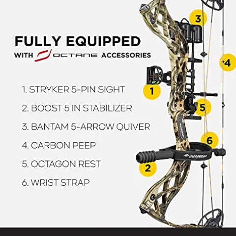 - Diamond archery bow comes standard with R.A.K. equipped system hunting accessories
