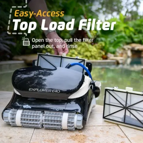 Effortlessly maintain a sparkling pool with the Dolphin (2024 Model) Explorer E40 Wi-Fi Robotic Pool Vacuum Cleaner. This cutting-edge cleaner features always-on Wi-Fi connectivity, allowing you to schedule cleanings from anywhere. Equipped with waterline scrubbing and active scrubbing brush technology, the Dolphin ensures a thorough clean every time, effortlessly removing debris while being gentle on pool surfaces. With precise movement and agile steering, navigating around obstacles is a breeze. Benefit from over 40 years of Dolphin’s legacy in pool cleaning, delivering unmatched performance, durability, and cost savings for a hassle-free pool maintenance experience.