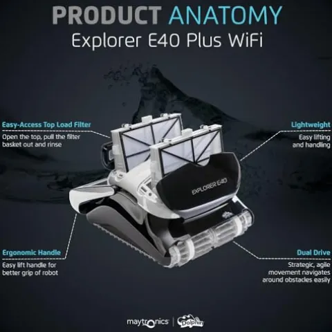 - ALWAYS CONNECTED: With the Dolphin Explorer E40 robotic pool vacuum cleaner, schedule your pool cleanings from anywhere with always connected Wi-Fi.