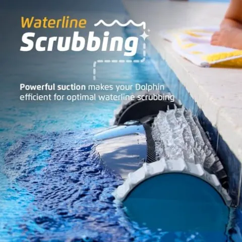 - WATERLINE SCRUBBING: Dolphin’s powerful technology ensures a spotless waterline. As your robot constantly grips the pool walls, it guarantees a thorough cleaning.