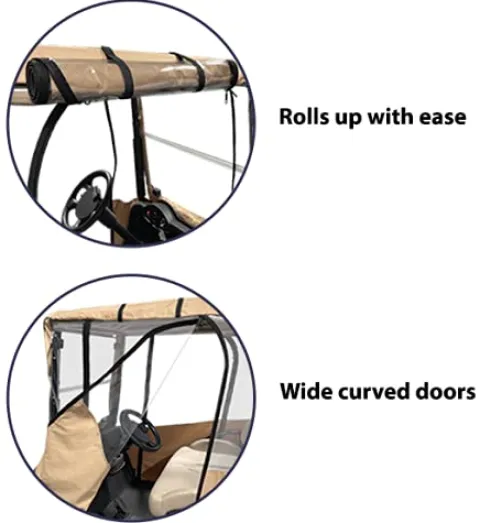 - 【Portable & Heavy-duty CLUB ORGANIZER】: The back of this portable golf cart enclosure has metal dual-pull metal zippers for easy club access and storage for your golf accessories. Adjust the two zippers to the desired length for easy access to the clubs, limiting additional exposure to the weather. It’s sturdy and double stitched. Protects your golf carts from the rain and also effectively protects against other severe weather.