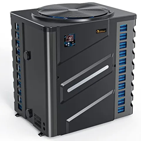 - IN-GROUND and ABOVE-GROUND – The 110,000 BTU inverter swimming pool heat pump is recommended for pool sizes up to 32,000 gallons in-ground or above-ground pools. The power-efficient heat pump pool heater is electric powered with an input requirement of 208 – 230 Vac and a current draw between 2.65~25.6A, 0.61~5.9KW. The efficient equivalent of 540%, 5.9 kilowatts will generate 110,000 BTU of heat (the equivalent of 32,237 watts).