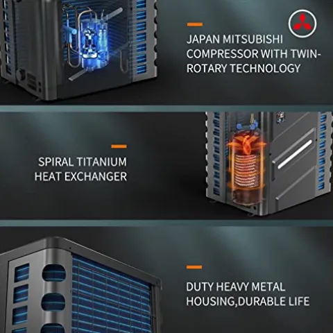 - MARKET LEADING TECHNOLOGY – The Dr. Heater heat pump is designed with industry-leading technology for top performance and stability. Our Full DC Inverter fan motor and compressor can adjust heating capacity between 20% – 100% for the most efficient operation. The compressor is designed with a twin rotary that operates together to balance the movement of each other for anti-shaking, which is higher efficiency, lower vibration & quieter operation.