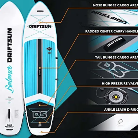 The Driftsun Inflatable Stand Up Paddle Board offers a versatile and convenient water adventure experience. This extra-wide 11ft x 36in x 6in ISUP package comes with everything you need, including a travel backpack, paddle, hand pump, ankle leash, and removable fin. Suitable for both youth and adults, this high-quality SUP board from Driftsun provides stability and ease of use for paddlers of all skill levels. Enjoy hours of fun on the water with this all-inclusive paddle board package.