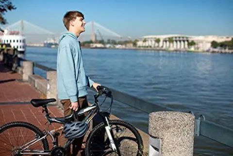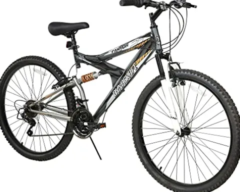 Conquer any trail with the Dynacraft Silver Canyon 26″ Mountain Bike. Featuring a sturdy steel frame in a sleek silver canyon black finish, this mountain bike is designed for riders 12 years and up or over 57″ tall. Equipped with front and rear alloy V-Brakes, 21-speed derailleur with grip shifters, and full suspension for a smooth ride on any terrain. The lightweight alloy rims add durability and agility to your biking adventures. Backed by a limited lifetime warranty on the frame and fork, this mountain bike is built to last through all your outdoor escapades.