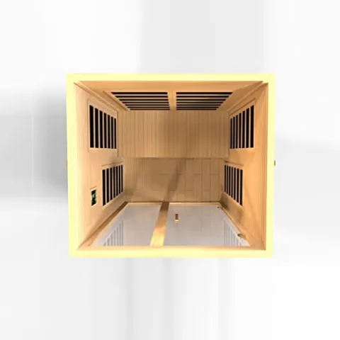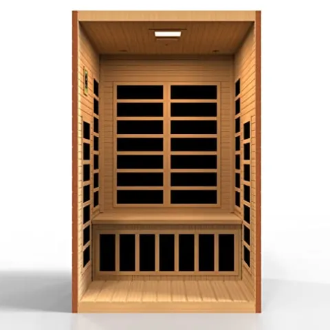 Experience the ultimate relaxation with the Dynamic Santiago Elite Honey Stain Finish 2-Person Ultra Low EMF FAR Infrared Sauna by DYNAMIC SAUNAS. Featuring 7 Carbon PureTech heating elements for a soothing sauna experience, this sauna boasts exterior dimensions of 46″ x 40″ x 75″, providing ample space for two individuals. Enjoy your favorite tunes with the built-in Music System Bluetooth and immerse yourself in the ambient lighting provided by the interior LED control panel and chromotherapy lighting system. Elevate your wellness routine with this luxurious and therapeutic sauna experience.