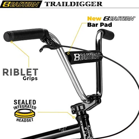 The Eastern Bikes Traildigger Model 20 Inch Bike in Black is a lightweight freestyle BMX bike designed by professional BMX riders. Featuring a full chromoly frame, 25t BMX sprocket, and 9 tooth driver, this bike is built for performance and durability. The sealed bearing front and rear hubs ensure a smooth ride, while the alloy 20 inch rims with 20 x 2.4 freestyle tires provide excellent traction. The tubular Chromoly crankset with a 3-piece design adds strength and stability to the bike. Backed by over 20 years of customer service excellence, Eastern Bikes guarantees top-notch support for all its products. Ideal for riders aged 13 and older, this bike is perfect for those looking to take their BMX skills to the next level.