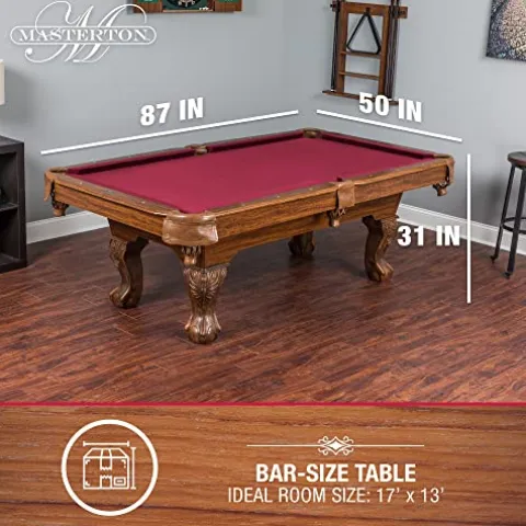 - TRADITIONAL BILLIARDS TABLE IN GAME ROOM SIZE – Measures 87” x 50” x 31” and recommended for rooms larger than 17′ x 13′. Great for man caves, game rooms, rec rooms or basements. Just add your own pool table accessories and you’re ready to play.