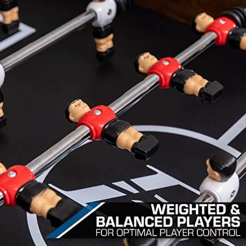 - STEEL PLAYER RODS & WEIGHTED PLAYERS – High performance play brought to you by hollow steel rods that encourage a faster spin while weighted and balanced foosball players allow for optimal player control.