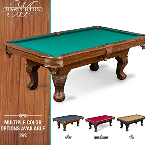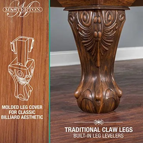 The Green Masterton by EastPoint Sports is the perfect addition to your game room, offering both style and function. Crafted for enthusiasts and casual players alike, this billiards table boasts premium K-66 rubber bumpers for consistent ball rebound and superior shot accuracy, ensuring professional-grade playability. Its robust construction features a scratch-resistant top rail and built-in leg levelers, providing durability and a perfectly even playing surface. The table’s parlor-style drop pockets not only enhance its classic appeal but also streamline gameplay by reducing clutter. With improved packaging as of August 2023, your table arrives in pristine condition, ready for action. Measuring 87” x 50” x 31”, it fits seamlessly into spaces larger than 17′ x 13′, making it a versatile choice for any man cave or rec room.