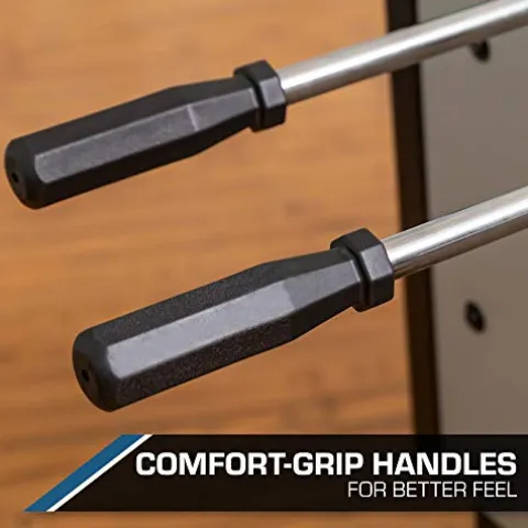 Elevate your game room with the EastPoint Sports Official Competition Size Deluxe Foosball Table, designed for thrilling multiplayer indoor play. This 54-inch Monaco table combines classic fun with high-performance features, including AMZ player rod bushings for smooth spinning and sliding. The weighted players ensure precise control, while built-in leg levelers guarantee balanced play. Measuring 54.75″ x 29.5″ x 34.75″, it fits perfectly in any space, from basements to office break rooms. Complete with four textured foosballs for enhanced playability and bead-style scoring to keep track of the action, this foosball table is an essential addition for both family and competitive matches.