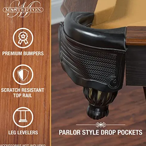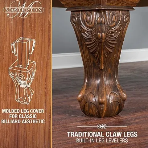 The Tan Masterton by EastPoint Sports is a premium billiards table designed for the ultimate gaming experience. With improved packaging to prevent shipping damages, this table arrives in perfect condition, measuring 87” x 50” x 31” – ideal for game rooms and basements. Enjoy playing 8 Ball Pool, 9 Ball Pool, One-Pocket, or traditional billiards with precision and strategy. The K-66 rubber bumpers ensure consistent ball rebound and shot accuracy, while the built-in leg leveling system guarantees a balanced playfield every time. Its scratch-resistant top rail and parlor style drop pockets add to the table’s durability and classic appeal. Get ready to become a pool shark with the Tan Masterton billiards table.