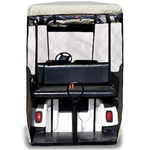 - DURABLE CONSTRUCTION: The Eevelle USA Golf Cart Enclosure is made of heavy-duty 300D Durapel denier polyester fabric. This fabric is highly resistant to sunlight and water, ensuring long-lasting protection for the cart and its occupants. The enclosure is designed to withstand the rigors of outdoor use and provide reliable performance over time.