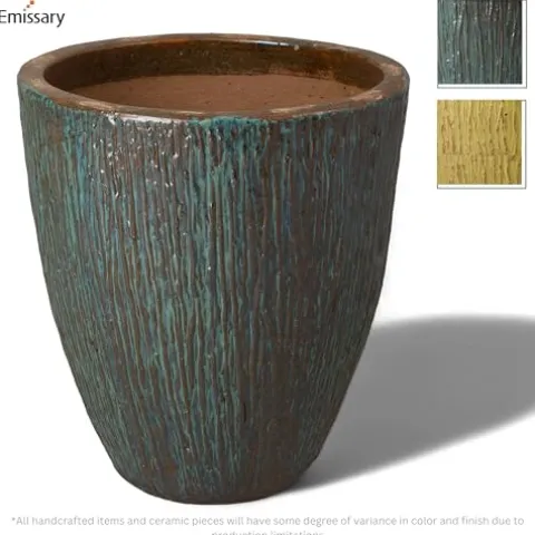 The Emissary Teal Stoneware Round Planter combines durability with aesthetic appeal, making it an ideal choice for enhancing both indoor and outdoor spaces. Crafted from high-quality stoneware, this handcrafted planter features a stunning calming teal color with a glossy glaze finish that adds elegance and sophistication to any environment. Its eco-friendly design utilizes local resources, minimizing its carbon footprint while promoting sustainable practices. Equipped with drainage holes, this planter ensures healthy plant growth by preventing water build-up and root rot, making it a practical addition to your gardening collection. Elevate your plant display with this stylish and functional piece.