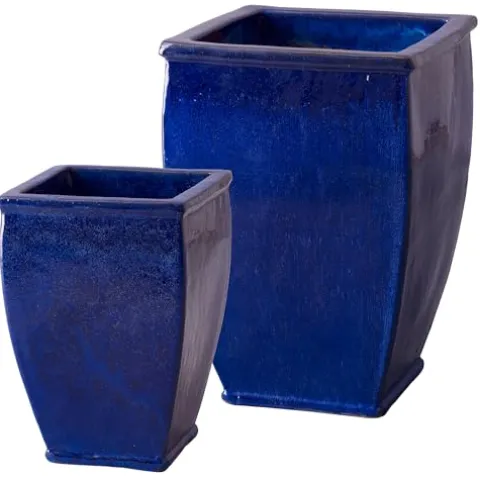 The Emissary 19in. L x 27in. H Blue Stoneware Square Planters (Set of 2) combine timeless elegance with high-quality craftsmanship, making them a perfect addition to any indoor or outdoor space. Handcrafted from durable stoneware with a glossy blue glaze finish, these planters not only elevate your decor but are also eco-friendly, utilizing local resources to minimize environmental impact. Designed with drainage holes, they ensure optimal plant health by preventing water build-up and root rot, allowing your greenery to thrive. Enhance your home or garden with these sophisticated planters that blend beauty and functionality seamlessly.