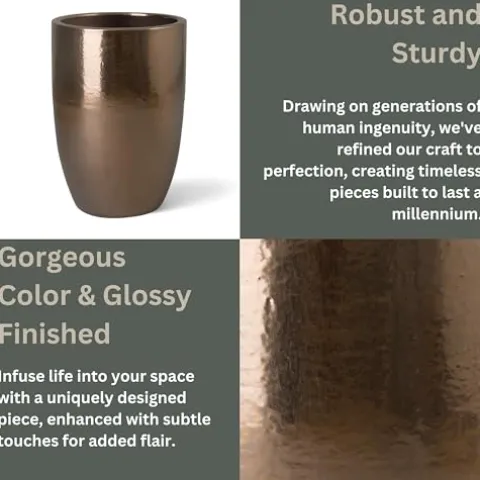 - Luxurious Gold Color with a Glossy Glaze Finish: Enhances Indoor and Outdoor Spaces with an Elegance Sophistication