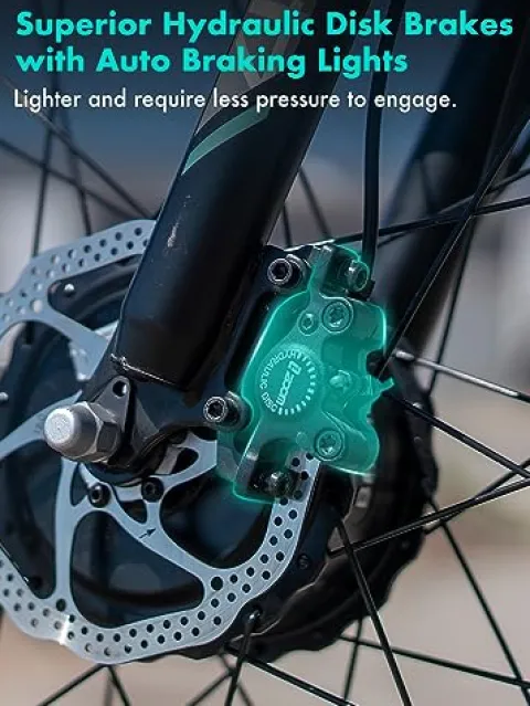 - 🚲3 Wheel electric bike with hydraulic disc brakes: Most electric bikes, especially trikes on the market are still using the traditional mechanical/ cable brakes, the hydraulics is with the superior stopping power and precision. Hydraulic brakes require less force to engage, and they deliver this force more evenly to the rotor. This means that a light pull on a hydraulic brake lever can produce a strong braking response, You don’t need to press as hard on your brakes any longer