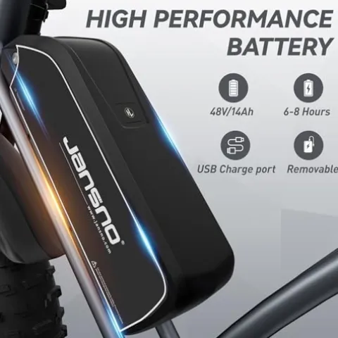 - ใ๐๐ฉ๐ ๐ซ๐๐๐๐ ๐๐๐ฆ๐จ๐ฏ๐๐๐๐ฅ๐ ๐๐๐ซ๐ ๐ ๐๐๐ฉ๐๐๐ข๐ญ๐ฒ ๐๐๐ญ๐ญ๐๐ซ๐ฒใJANSNO Ebike comes with a 48V/14Ah removable battery. With 5-8 hours fast charging, and a longer lifetime, covering a range of 20-40 miles per full charge. Removable battery, convenient to bring home or office to recharge.