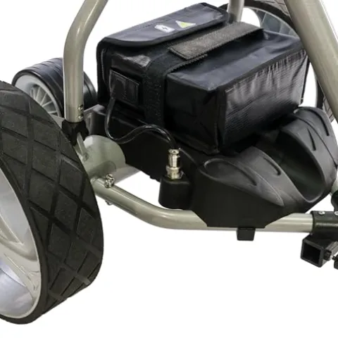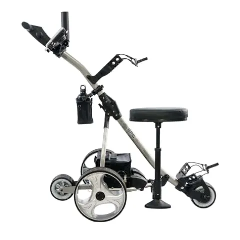 Enhance your golfing experience with the EPG Golf eR-Pace S Remote Control Electric Power Golf Trolley Cart Caddy in sleek silver. Equipped with a robust dual 200W motor and rear-wheel drive, this trolley offers seamless maneuverability with a remote range up to 100 yards and 9 speed settings. Its durable aluminum alloy frame and airless rubberized tires ensure reliability and ease of use, while the compact, foldable design simplifies transport and storage. The powerful 12V LiFePO4 lithium battery supports a full 36 holes on a single charge, with a lifespan exceeding 1,500 charges. Enjoy added convenience with included accessories like a detachable seat, scorecard holder, and umbrella holder. Whether tackling challenging terrains or enjoying a leisurely round, this trolley’s 30-degree climbing capability and 88lb load capacity ensure optimal performance.