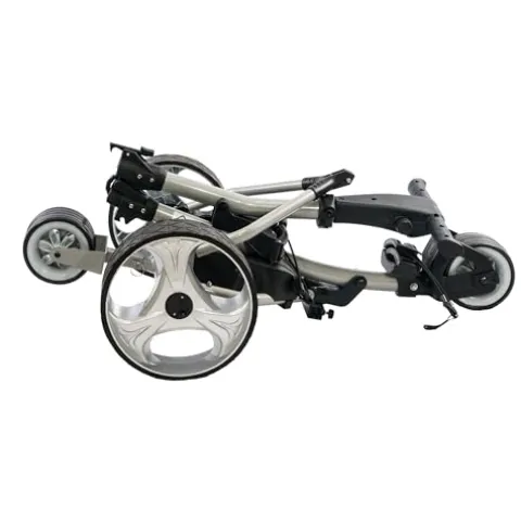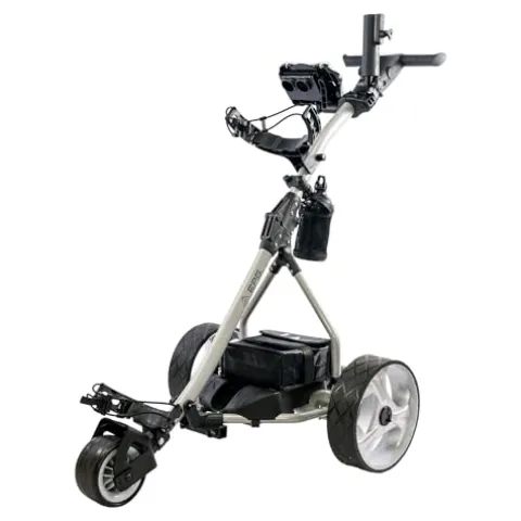Experience effortless golfing with the EPG Golf eR-Pace S Remote Control Electric Golf Trolley Cart Caddy. Finished in sleek silver, this advanced trolley combines ease-of-use with cutting-edge technology. Navigate the fairways with precision using the powerful remote control, offering an extensive range of up to 100 yards and nine speed selections. Its robust dual 200W motors ensure reliable performance, while the 12V20Ah LiFePO4 battery provides ample power for 36 holes on a single charge. Designed with convenience in mind, the trolley features a one-click folding system and durable aluminum alloy construction. Tackle any terrain with confidence, thanks to its 30-degree climbing capability and robust, airless rubber tires. Complete with practical accessories like a scorecard holder and an anti-tip wheel, this trolley is an indispensable companion for any golfer looking to enhance their game.