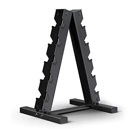 - EFFICIENT DESIGN – The A-frame rack design maximizes floor space. Effortlessly access and store dumbbells.