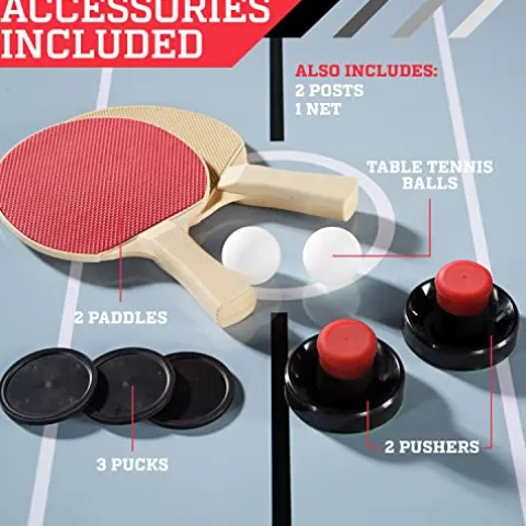 - ESPN Air Hockey Ping Pong Table Combo: Premium table that is built for air-powered hockey and table tennis; Foldable table that stows neatly underneath, ideal for family game rooms