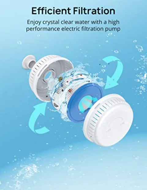 - Easy Maintenance: Keeping the water clean not only makes it safe, but also helps prolong the life of your inflatable tub. Use the easy-to-move electric filter pump via the operation panel to effectively maintain the water quality from being affected by the rain, fibre, hairs, or other debris.
