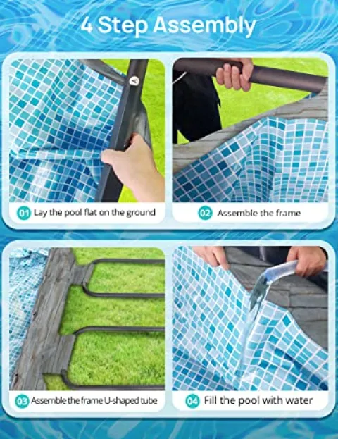 - Easy 3 Step Assembly: Enjoy a splashing good time with your family and friends all summer long in only 3 steps: simply lay the pool on the flat ground, assemble the frame, and fill the pool with water.