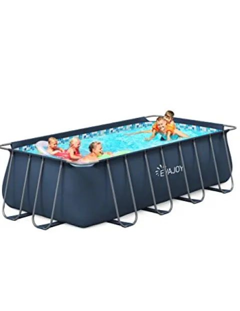 Enjoy endless summer fun with the EVAJOY 14ft x 7ft x 48in Metal Frame Swimming Pool Set for Families. This rectangular above ground pool set comes complete with a cartridge filter pump, filter cartridge, pool ladder, ground cloth, and pool cover, making it the perfect addition to any backyard. The sturdy frame and 3-layer PVC support bands ensure stability, while the powder-coated, galvanized steel frame protects against rust and corrosion for long-lasting use. The durable 3-layer PVC liner resists rips, punctures, and fading from sunlight, while the eco-friendly cartridge filter pump keeps the water clean and safe. Easy to assemble and maintain, this pool is ready for splashing summer fun in no time.