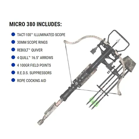 - HIGH PERFORMANCE – Excalibur Crossbow’s Micro 380 is the true definition of performance, maneuverability and durability; Perfect for the run and gun, spot and stalk hunter when lightweight and comfort is a must, or the treestand and ground blind hunter