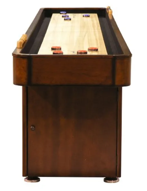 Enhance your game room with the Fairview Game Rooms ® 12′ Shuffleboard Table in a rich Chestnut finish. Crafted by Fairview Game Rooms, this shuffleboard table is designed for durability and style. The Chestnut color adds a touch of elegance to any space. Enjoy hours of fun with family and friends as you glide the puck down the smooth playing surface. Elevate your game room experience with this premium shuffleboard table.