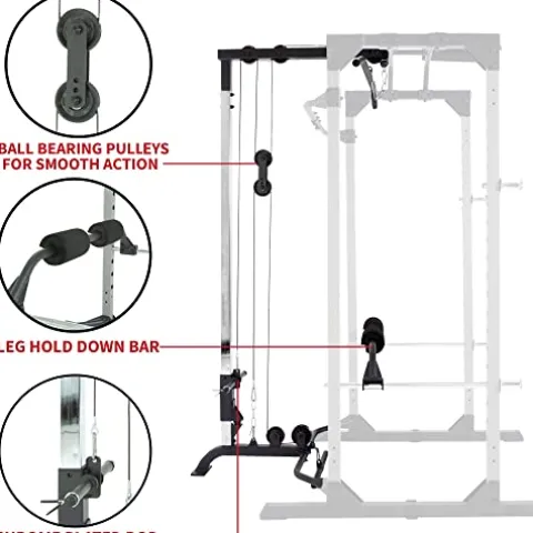- 【POWER CAGE + LAT PULL DOWN COMBO 】- This combo package is the ultimate home gym setup! You get almost all the benefits of a traditional cable crossover + a Lat pull down system with an adjustable leg hold down bar.