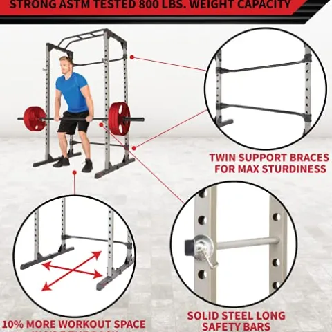 - 【STRONG ASTM TESTED 800 LBS. WEIGHT CAPACITY】- Don’t put your safety in the hands of a squat rack that hasn’t been tested. Our Squat Rack was ASTM tested at 2,000 pounds in order to get an official weight capacity of 800 pounds. Large walk in space for comfortable workouts.