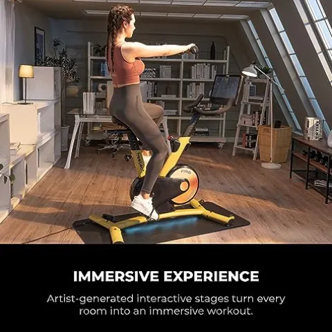 - 🚵♂ 【15.6″HD ROTATABLE TOUCHSCREEN】Artist-generated interactive stages turn every class into an immersive workout via the 15.6″HD touchscree,Experience a fun interactive game in which you ride to the rhythm and score by your rhythmic pedal accuracy. Our sensors won’t miss a single pedal and receive instant performance tracking results at every beat. Challenge friends and family for the best score. Climb up the leaderboard to make the most of your home fitness adventure.