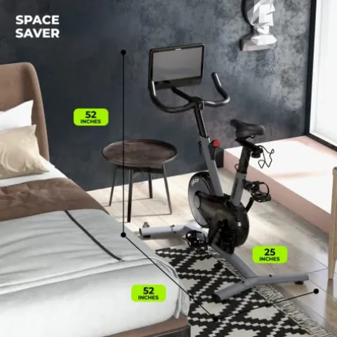 - 🚵♂ 【MEASUREMENTS & REQUIREMENTS】We require leaving 24” on all four sides to store and train on your Bike. Keeping your Bike in a room with a minimum ceiling height of 8’ will ensure adequate headroom while riding. Product Dimensions (fully extended): 51.5” L x 51.5” H x 24.7” W; Screen: 15.6” diagonal; Weight: 79 lbs; Power cord length: 10’. User requirements – Height range: 4’11”–6’5”; weight maximum: 297 lbs; age minimum: 14.
