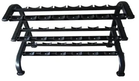 Keep your workout space organized and clutter-free with the French Fitness 3 Tier Saddle Dumbbell Rack. This sleek and durable rack can hold up to 10 pairs of dumbbells, helping you maintain a tidy gym environment. Designed by French Fitness, a trusted brand in fitness equipment, this rack is not only functional but also adds a touch of style to your home or commercial gym. Say goodbye to scattered weights and hello to a more efficient and professional workout area with this high-quality dumbbell rack.