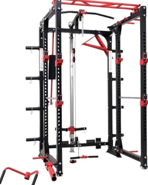 Enhance your home gym with the French Fitness Folding Cable Power Rack/Cage. Made with durable ASTM A36 steel tubing, this power rack features a cable with a strong tensile strength of 1764 lbs, making it ideal for a variety of exercises. The rack is foldable for convenient storage and comes with a multi-grip removable chin-up/pull-up bar and 8 storage weight horns for added versatility. Upgrade your workout routine with this high-quality and space-saving power rack from French Fitness.