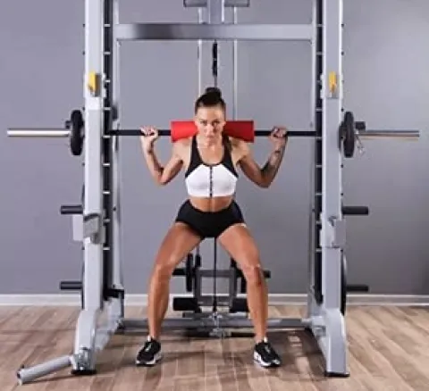 - SMITH MACHINE: 45 lb 7 ft (84 in) Olympic Bar w/Counter Balance; Bearings are Quiet; Straight up and Down