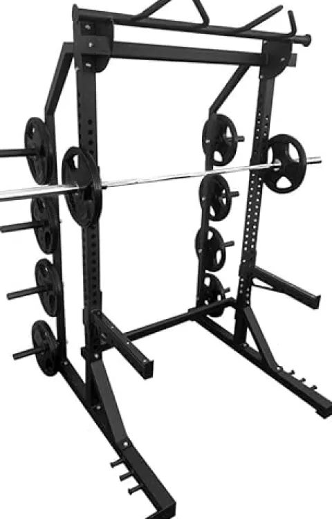 Elevate your home gym with the French Fitness Tahoe Half Cage/Rack, designed for those serious about strength training. This robust half cage offers a safe and efficient workout experience, allowing you to perform a wide range of exercises from squats to overhead presses. Built with high-quality materials, it ensures stability and durability while accommodating a variety of weightlifting needs. The adjustable safety bars and J-hooks provide added security and versatility, making it suitable for all fitness levels. With its sleek design and compact footprint, the Tahoe Half Cage/Rack seamlessly fits into any space, making it an essential addition to your fitness routine.