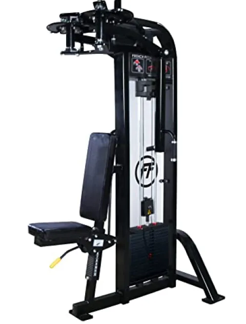 Elevate your strength training with the French Fitness Tahoe PEC Fly / Rear Delt machine, designed in sleek black to complement any fitness space. Engineered with a robust 3mm thick, 11-gauge ASTM A36 steel frame, it offers exceptional durability and stability. The fiberglass-impregnated nylon pulleys with sealed bearings ensure smooth and reliable movement, while the solid-steel weight plates, featuring self-lubricating bushings, offer a seamless workout experience. A magnetically locking weight selector pin, permanently tethered to the stack, ensures convenience and security, preventing any loss during intense sessions. This machine is a perfect blend of precision engineering and advanced functionality, making it an ideal choice for serious fitness enthusiasts.