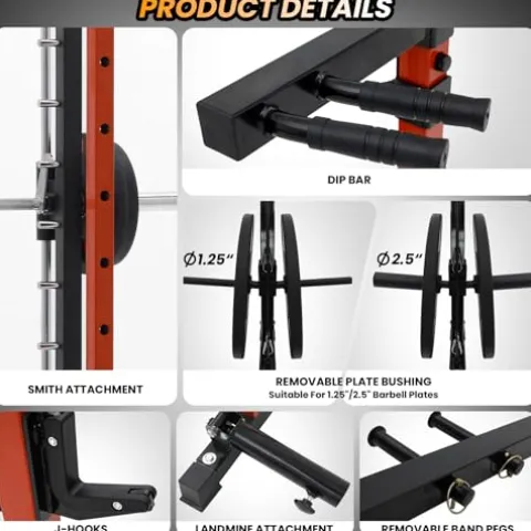 - Fully Equipped Design: Arrives with 21 free attachments including a SmithBar, Nylon Safety Straps, Dip Bars, and more, ensuring a comprehensive workout without the need for additional purchases.