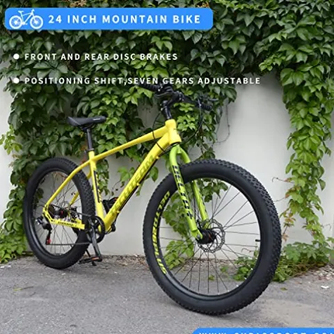 Conquer any terrain with the 26 Inch Mountain Bike, Mens Fat Tire Bicycle. Equipped with 26-inch wheels and 3-inch wide tires, this bike is designed for ultimate grip and obstacle-conquering ability, from roads to trails to snowy paths. The 7-speed rear derailleur ensures smooth shifting for acceleration, climbing, or maintaining speed. Its high-carbon steel frame provides durability and performance, while the dual disc brake system offers reliable stopping power and speed control. Easy to assemble with tutorial videos included, this bike is ready for any adventure right out of the box.