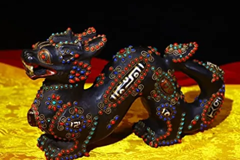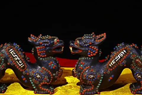 Elevate your space with the 10″ Tibetan Temple Collection, a stunning pair of old natural meteorite mosaic gem Dzi beads featuring intricate dragon and Ruyi designs. Crafted from durable bronze, this exquisite set serves as both a captivating decorative piece and a symbol of prosperity and protection, ideal for gathering fortune and enhancing the ambiance of your home or office. The unique design and historical significance make it a perfect gift for collectors or anyone interested in Tibetan culture. Add a touch of mystique and elegance to any room with this timeless treasure from the Generic brand.