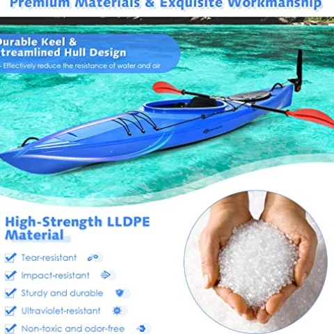 - Premium Materials for Durability: Since the sit-in kayak is made of superior LLDPE, it perfectly resists tear, wear and impact. Plus, the fishing kayak offers a load capacity up to 300lbs, which is ample for outdoor events. Besides, the package also contains a detachable paddle that is crafted of aluminum & PP for high strength & light weight.