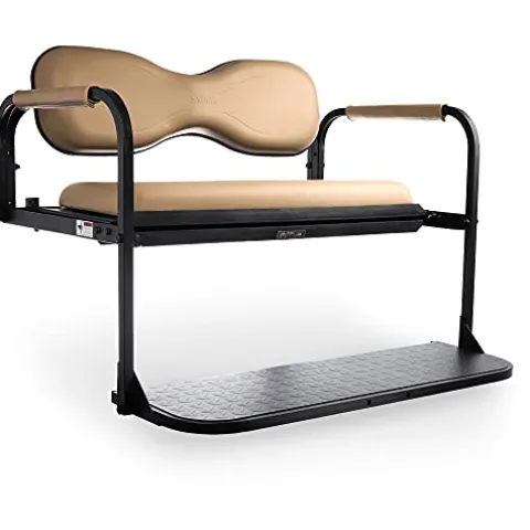 Enhance your golf cart with the MODZ Flip4 EZGO TXT & TXT48 1995+ Golf Cart Rear Seat Kit in Tan from Golf Cart King. Designed to fit all EZGO TXT models from 1995 onwards, this rear seat kit features a straightforward bolt-on design for easy installation using basic hand tools. The Flip4 boasts OEM color matching contoured seat cushions and removable armrest covers made of marine-grade vinyl for both style and comfort. With a convenient fold-down cargo bed, high-density polyethylene diamond textured cargo bed, and integrated seat belt tabs, this feature-rich kit ensures practicality and safety. Upgrade your golf cart’s functionality and aesthetics with the MODZ Flip4 Rear Seat Kit.