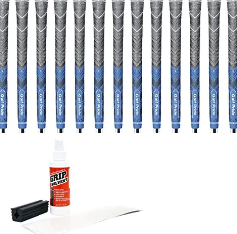 Enhance your golf game with the Golf Pride New Decade Multi Compound MCC Plus4 Grip Kit. This 13-piece kit includes everything you need to re-grip your clubs, featuring a stylish blue color that adds flair to your equipment. Weighing 52 grams, these grips offer a comfortable and secure hold with a round shape and standard size. Elevate your performance on the course with the Golf Pride New Decade Multi Compound MCC Plus4 Grip Kit.