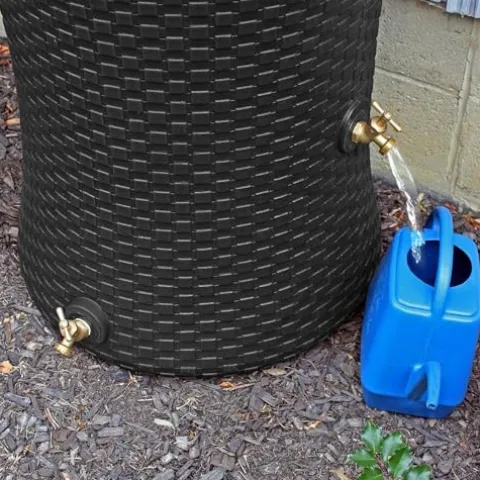- Dual Brass Spigots for Versatile Utility: Two brass spigots allow you to attach a hose at the front or use the side spigot to fill tall buckets; Second spigot can be used as an additional overflow control or link to other barrels